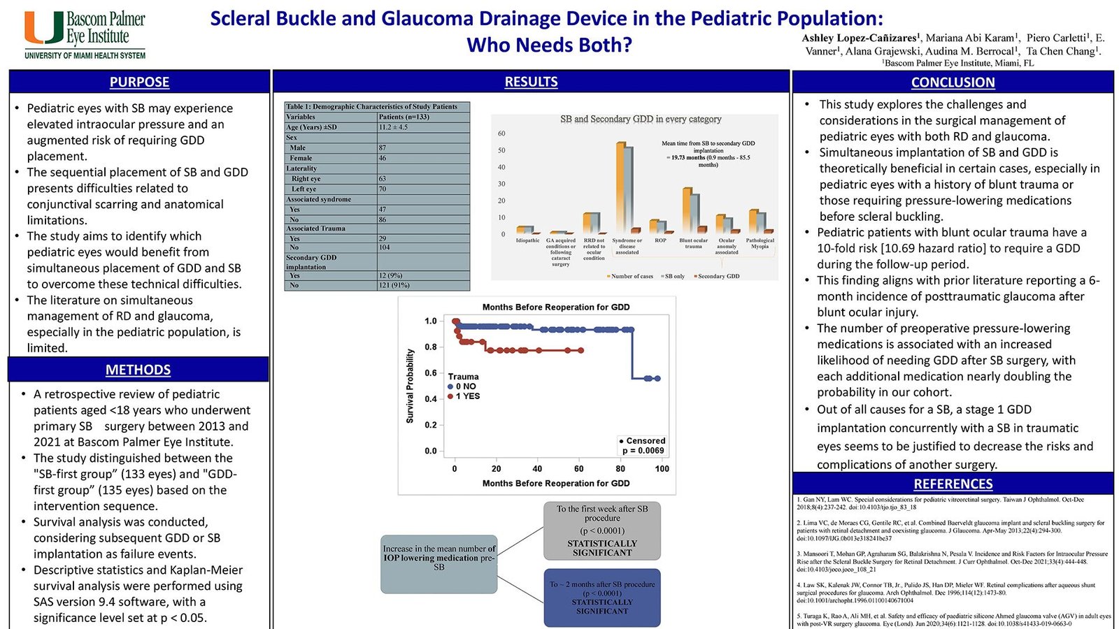 A retrospective review of pediatric patients aged <18 years who underwent SB surgery between 2013 and 2021. The cause for a SB, number of glaucoma medication pre- and post-operatively, and need for GDD were noted.
