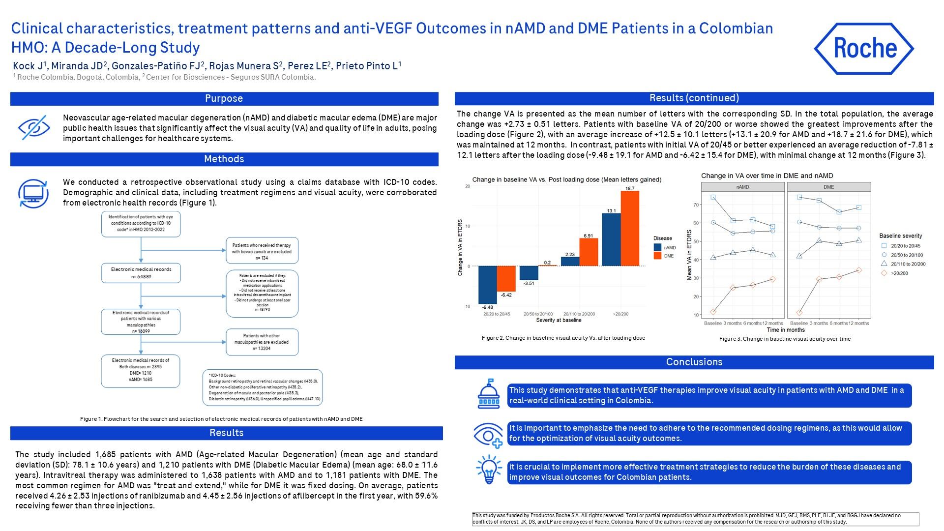 Assessment of clinical characteristics, treatment patterns and anti-VEGF Outcomes in nAMD and DME Patients in a Colombian HMO: A Decade-Long Retrospective Study
